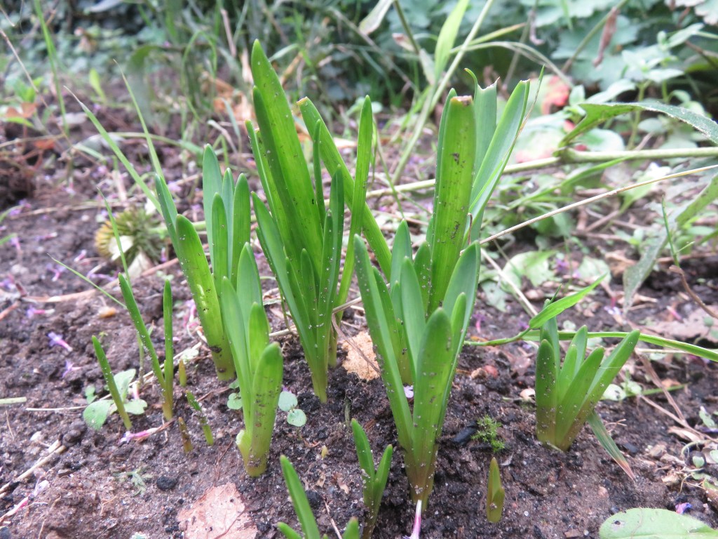 Alles leuk en wel, eerste week van september, maar wat steekt daar nu eigenwijs al de kop op? Ik heb geen idee, maar weet, dat opkomende voorjaarsbollen in de eerste week van september niet normaal is. Is het de regen, die opeens overvloedig ging vallen in augustus? Raadsels, raadsels.