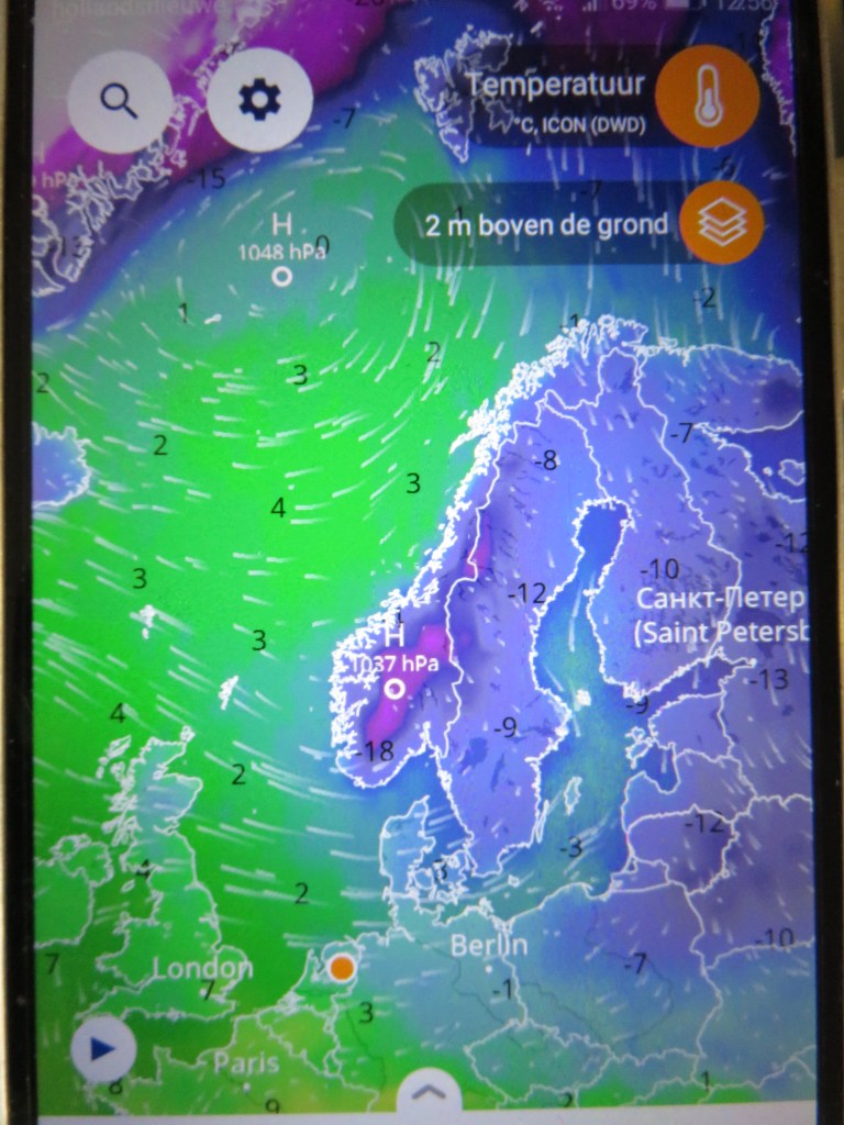 Dít is waar de ware winterliefhebber jaren, vele jaren op gewacht heeft. Hadden we ooit nog zo’n kaart durven te dromen? Ik niet. Ik hoef hoop ik niet voor de leek uit te leggen, dat hoe blauwer de kleuren, hoe kouder het ergens is. Sterker nog, met een veeg van de vinger naar rechts kom je zo in Siberië terecht, en zie je hoe koud het daar is, ongeacht welk moment van de dag. Het is een soort van op reis gaan, en daar allerlei beelden bij zien.