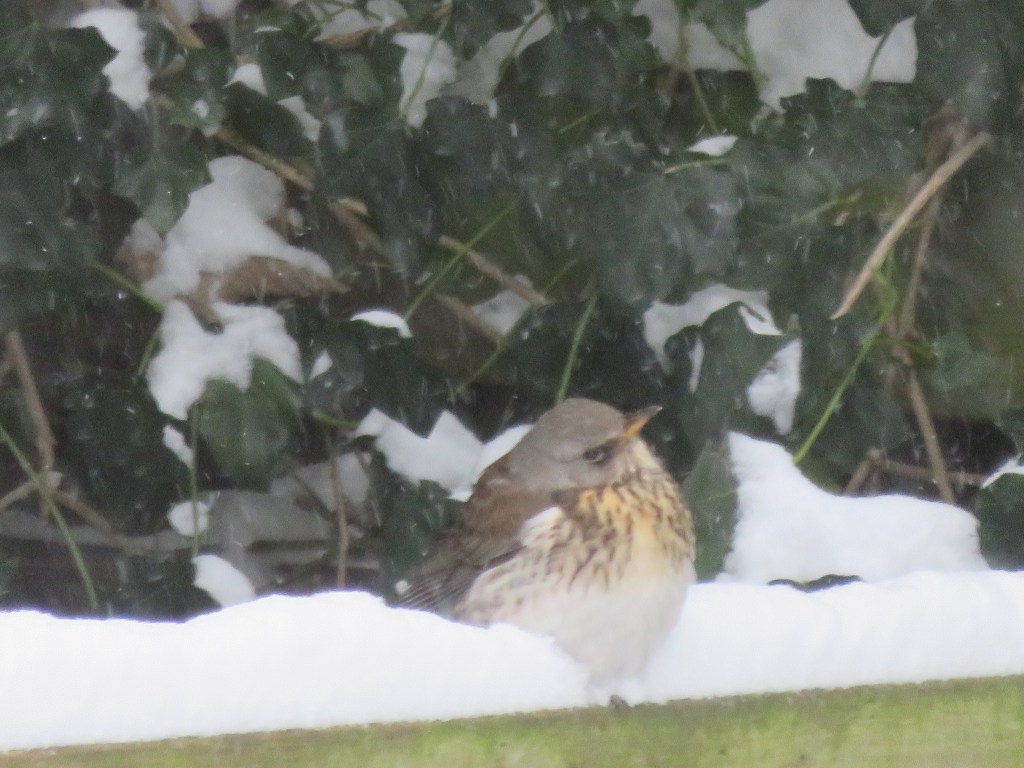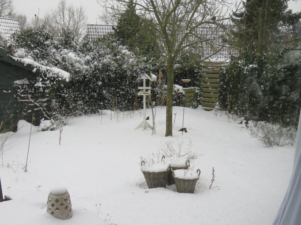 Het is altijd een gok, maar nu er zo’n dik pak (20-25 centimeter) sneeuw ligt, is het altijd uit kijken naar kramsvogels. Tijd om een paar kilo appels te kopen en in de tuin te leggen. Ogenblikkelijk komen de merels er op af. En verdraaid.. opeens is daar het ge ‘tják-tják’ boven de tuin. De eerste keer dat ik – tijdens hevige sneeuwval – kramsvogels bij een achtertuin zag, was in januari 1984, bij de tuin van het ouderlijk huis. Magische momenten.