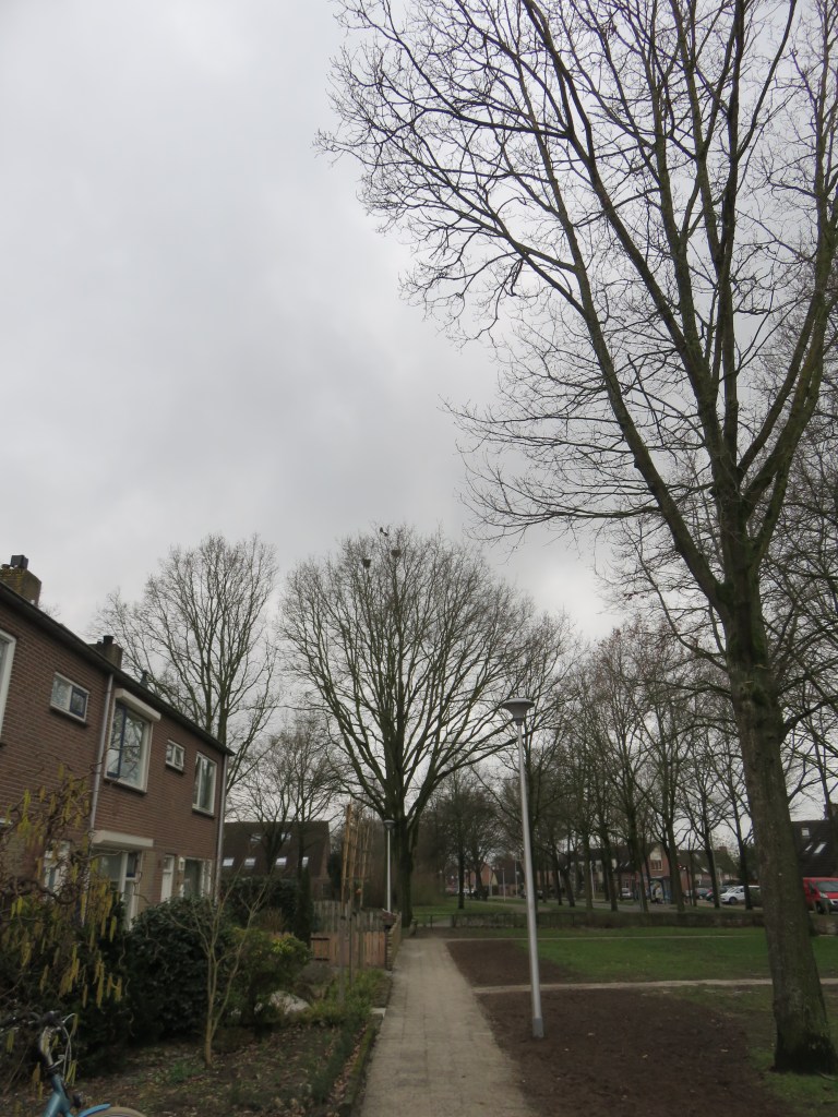 Tot mijn verbazing blijken het twee paartjes roeken te zijn. Waarom ik verbaasd ben? Omdat de plaats welke zij gekozen hebben, eigenlijk tegenwoordig niet meer ‘des roeks’ is. Hele kolonies zie je altijd in de buurt van de wat grotere benzinestations, waar eten gehaald kan worden. Dat is voor de roek het eerst verdiend, als de mens dan wat achter laat. Een aantrekkelijke broedplek langs de snelweg kan het toch niet zijn. In vooral het buitenland zie je ze ook wel in de buurt van oude kerken. Maar zo midden in een dorp, dat is toch iets van vroeger. Ik ben benieuwd hoe dit zich de komende jaren gaat ontwikkelen.