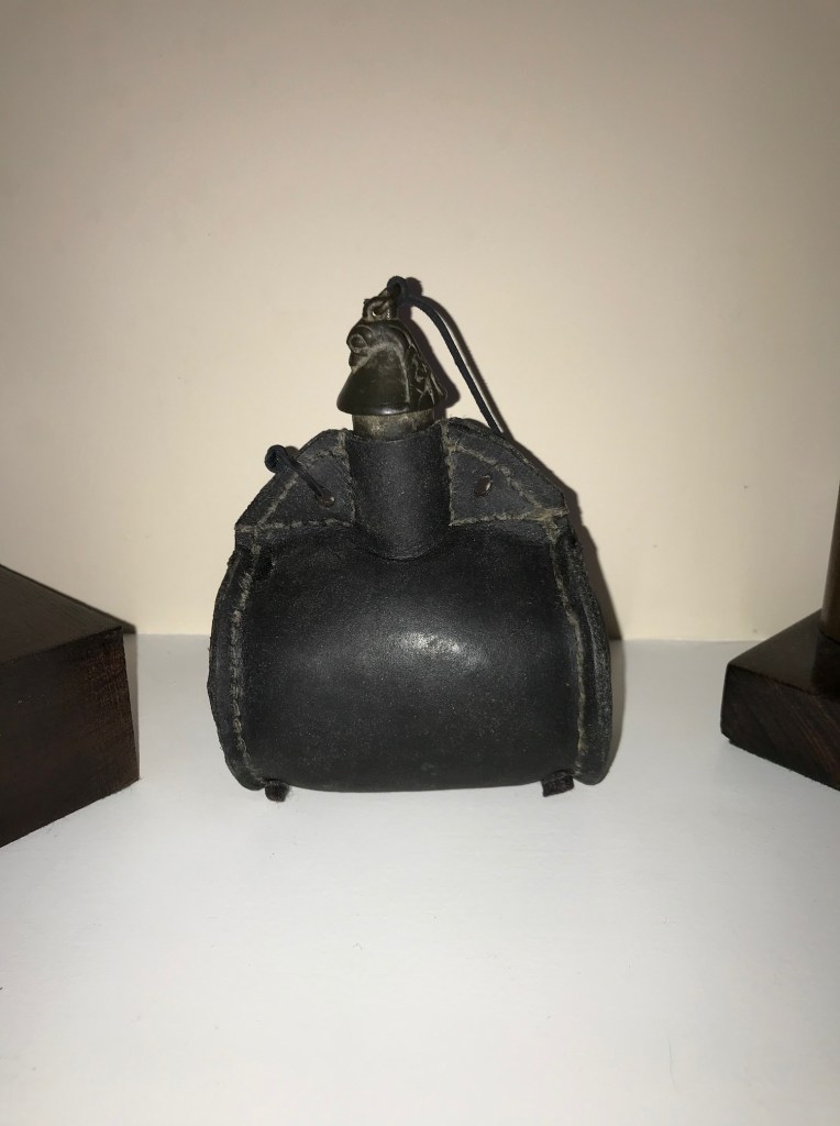 Tenslotte is hier onder, met de nodige artistieke vrijheid, verbeeld hoe de container met de vloeistof er uit gezien zou kúnnen hebben. Misschien bestond er in de Vikingtijd al zoiets als een flesje Jägermeister voor ‘onderweg’. We zullen het nooit zeker weten, maar geheel ongeloofwaardig klinkt deze aanname niet.