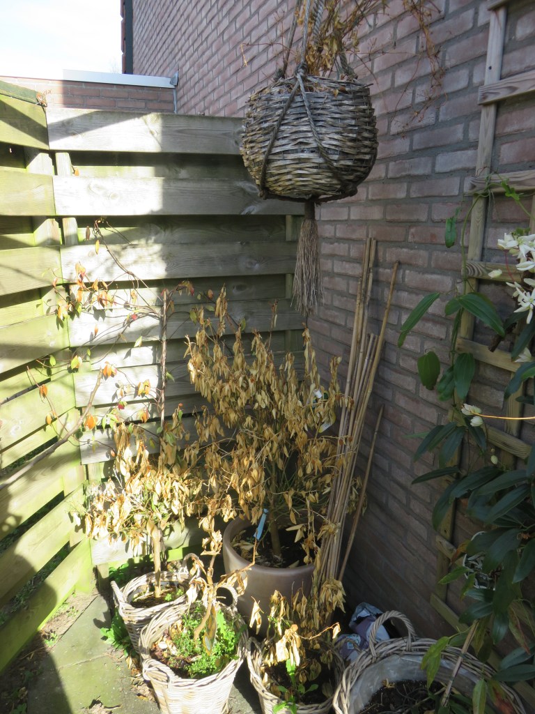 In de tuin begint het los te komen. De clematis heeft glansrijk de vorstperiode en sneeuw overleefd en bloeit als niet tevoren. Een geur van citroen, jasmijn en fluitekruid gecombineerd doet Zuid-Europees aan. Het is ook een bijzonder snelle groeier, die meters per jaar groeit en tegen kou tot -25 graden kan, schijnt. Die had ik dus niet hoeven inpakken. De boeren en Indische jasmijn heeft geen kans gemaakt, maar loopt hopelijk opnieuw uit. De Toscaanse jasmijn, met een meer leerachtig blad, ziet er groggy uit, maar overleeft het wel. Citroen en sinaasappelboompjes zijn grotendeels afgestorven, maar lopen nog wel uit.