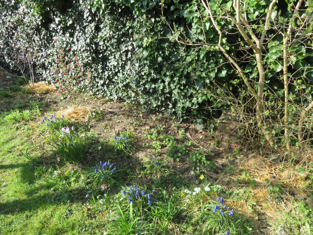De bloementuin komt ook rap op, er bloeit nog niets, maar de belofte is er. Ik ben benieuwd wat er dit jaar allemaal weer tevoorschijn komt, verwacht of onverwacht. Of: weg blijft. Geen jaar is hetzelfde.