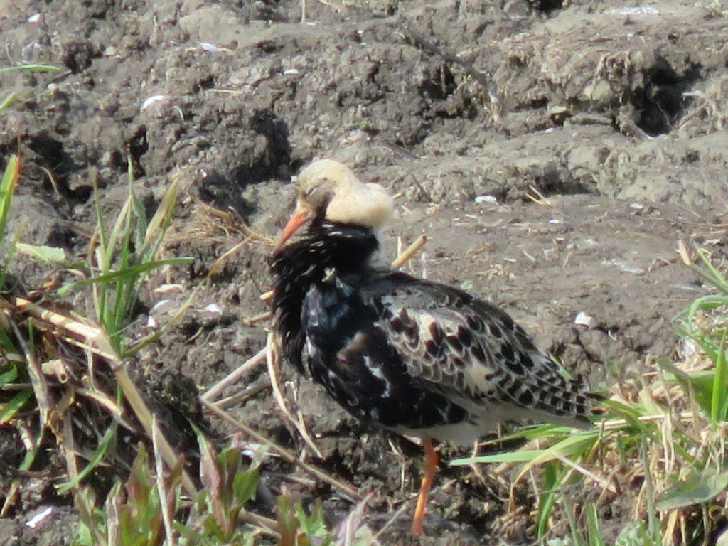 Je ziet ze met name buiten de winter om. Vooral de trektijd kun je ze zien, en heel soms vertonen ze dan ook baltsgedrag. Ook al broedt 99,99% van de kemphanen buiten onze landsgrenzen, toch broeden er nog – hooguit – enkele tientallen paartjes her en der in het land. Van wat er ooit duizenden waren.. In het begin van de lente zag ik ze bewust voor het eerst in mijn leven bij Arkenheem. Het leken toen, half maart, gewoon een soort lopers, wel heel fraai. Maar waar het hem om te doen is, de mannetjes in prachtkleed te zien. In Den Haag als kind zijnde, had ik geen idee waar ik deze vogels kon gaan bekijken. Dat was iets van ver weg in de weilanden of in Friesland. Het bleef dus een wensvogel. Tot nu.