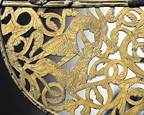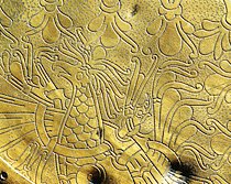 In detail laat het wederom een mythisch beest zien. Een pauw? Met een beetje fantasie zou men dit er in kunnen zien.