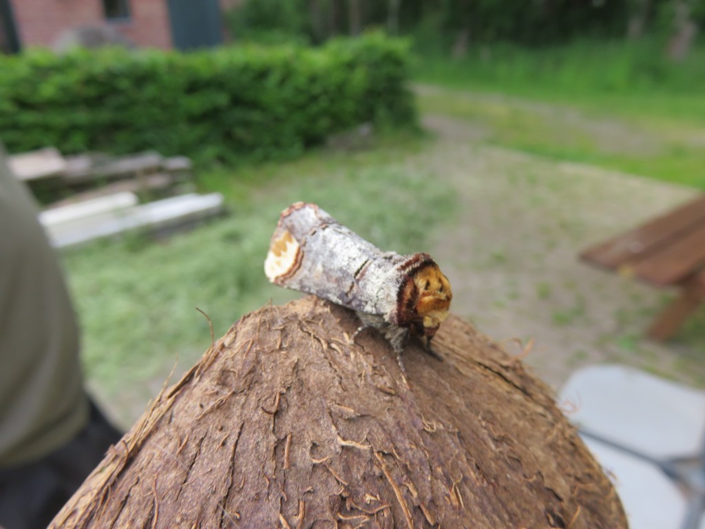 Naast het erf en natuurfotografie is Mark ook geïnteresseerd in nachtvlinders. Hij laat ons de ‘oogst’ van de afgelopen nacht zien. Naast een paar pijlstaarten komt deze bijzondere nachtvlinder voorbij. Het is net een klein takje van een berk. Het begrip ‘schutkleur’ wordt weer van een nieuwe dimensie voorzien.