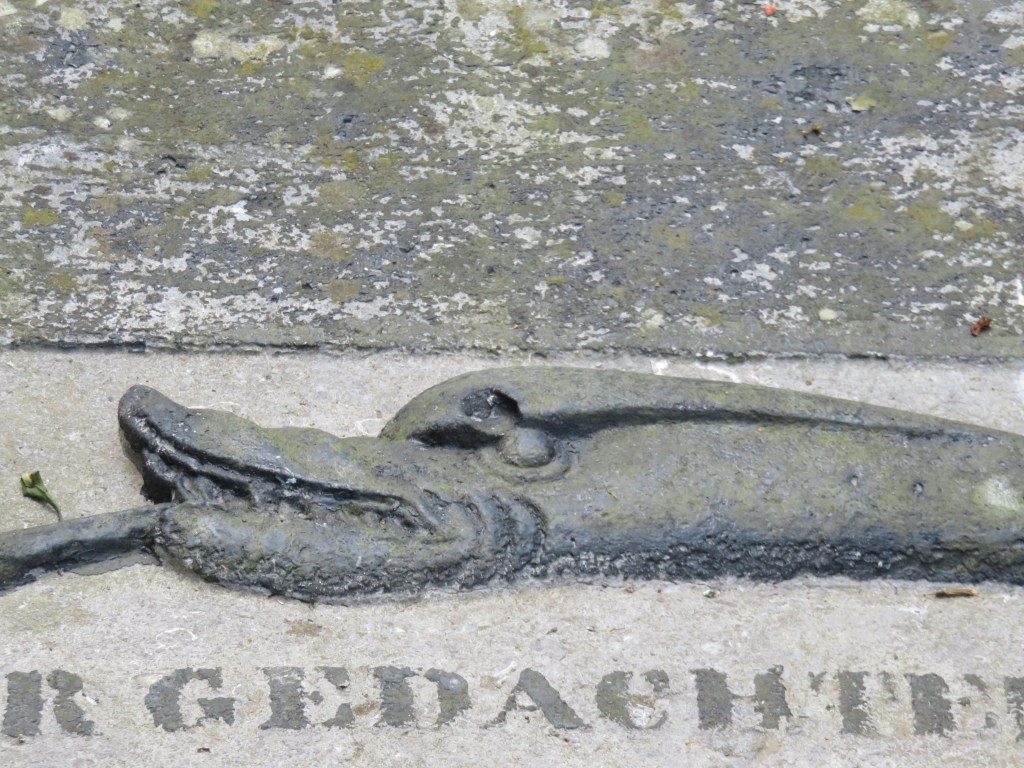Even verderop tref ik een tweetal graven aan met welhaast Scandinavisch aandoende slangen op de grafstenen. De slang die zichzelf in de staart bijt: symbool voor de eeuwige levensloop. Ik zag het zo nog niet eerder op een grafsteen.