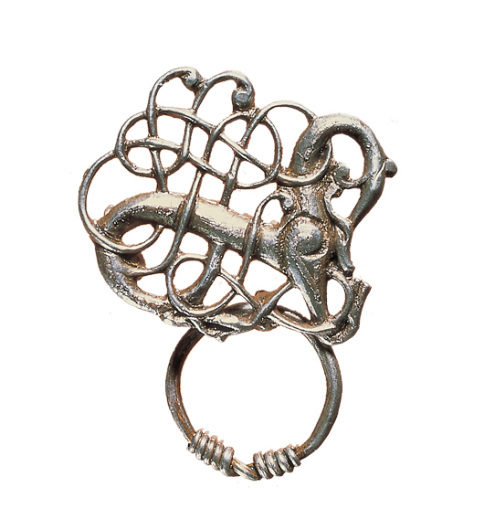 Hier is de verfijning op een hoogtepunt. Niet alleen zijn de achtvormige belijningen nóg ronder en nóg slanker. Het uitgesproken kenmerk van de Urnesstijl, de langsnuitige diervormige figuren komen hier in optima forma terug. Zo ook bij de, eveneens in Denemarken gevonden broche hieronder. Hier is het langwerpige, amandelvormige oog een ander zeer kenmerkend element van de Urnesstijl.