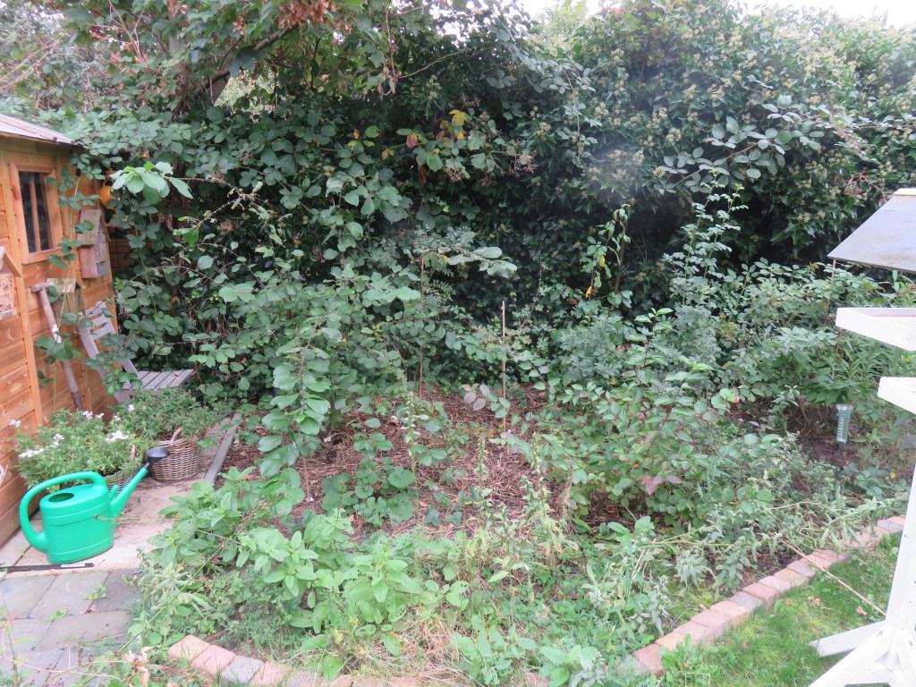 Het tiny forest – in maart geplant – is knap gegroeid dit jaar dankzij de natte zomer en geen ál te zeer uit de band schietende warmte. Het is al een echt struweel geworden waar vogels beschutting vinden.