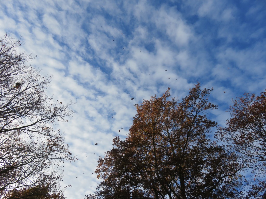 Opeens régent het laatste blad er af. Wat een nacht met vorst al niet kan doen. Doordat de eerste nachtvorst tegenwoordig veel later komt krijg je ook de indruk naar een enorm lange herfst te kijken. Er lijkt maar geen einde te komen aan de verkleuringen en geleidelijke bladval. Maar nu loopt het dan toch ten einde.