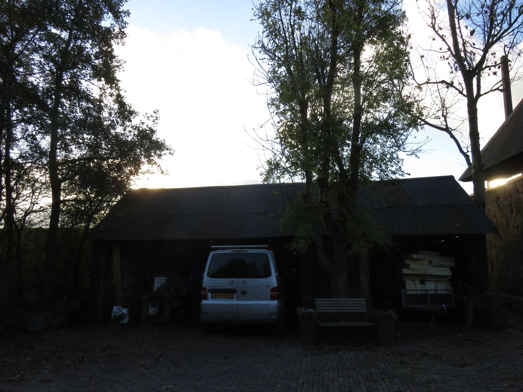 Wilhelm, een, mag ik dat zeggen, begenadigd schilder – wat heeft hij een werk in deze woonboerderij gestoken om alles beter dan perfect te schilderen in passende kleuren – en handige man, had al iets op maat gezaagd om de toch zware kast op te laten rusten in de schuur. Naar boven dan maar..