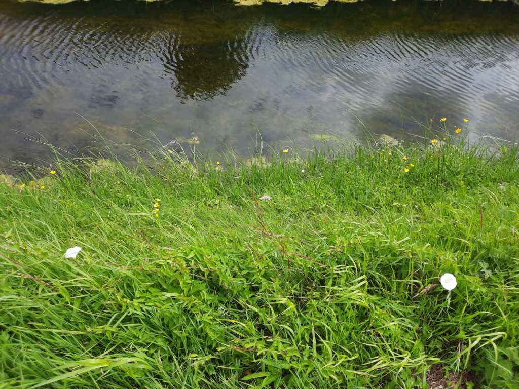Precies in de strook tussen bemest land en sloot gaat van alles fraais groeien en bloeien. Natuurlijk landschap. Kruidenrijk. Vrij van de allesverwoestende en vergiftigende ammoniak die met de mest uitgereden wordt. De hemel gaat open. Het land komt weer tot leven. Hálleluja !