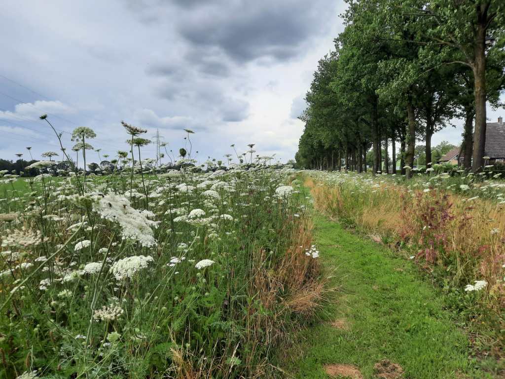 Ook hier is een niet-bemesten-ingericht, maar juist door er wat met te dóen: insecten trekken. Wilde peen is hier één van de geschikte bloemen voor. Wit, paars en geel: dan zit u altijd goed qua bloemensoorten.