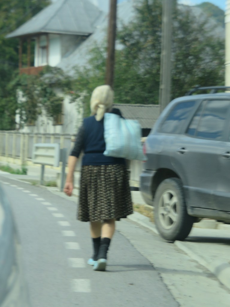Ik raak als vanzelf nieuwsgierig naar dit gebied, ver weg van de stad. Zal ik hier nog iets van het “oude” Roemenië aantreffen? We komen in Botica, “het dorp met de houten huisjes.” We leven inmiddels in 2023 en modernisering heeft zich hier ook aangediend. De als niet geasfalteerde weg er naar toe blijkt sinds een jaar of 5, 6 geasfalteerd. Toch zijn er nog genoeg houten huizen en schuren te zien, zeker als men van de hoofdweg af gaat. Nóg – nog steeds, maar voor hoe lang nog? – zijn vrouwen te zien, zoals je ze in de jaren 80 op het nieuws zag in de rij voor de winkels in het oostblok. Het is dan de generatie 60plus die er nog zo bij loopt. De kinderen lopen al vaak in een jogging- of gewone broek en sportieve schoenen.