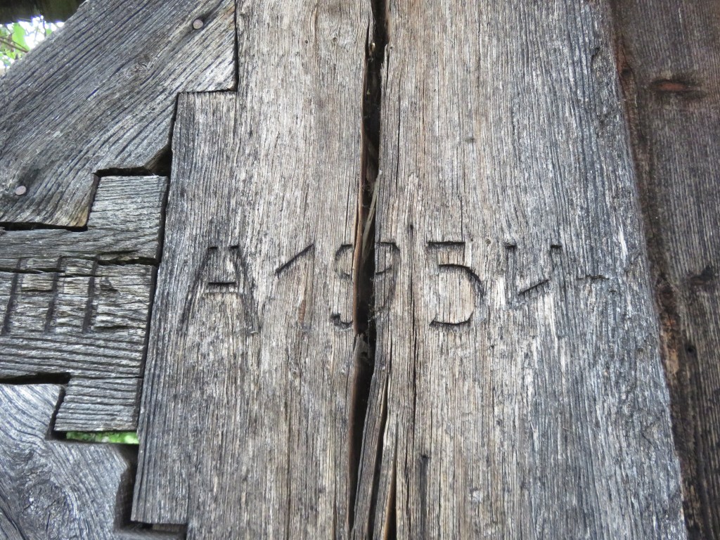 In het dorp tref ik, op enkele plekken, nog oudere poorten aan. Ze zijn direct herkenbaar door de veel simpelere vorm en decoratie. Wat ze gemeen hebben is de eenduidige decoratie, de wolfstanden. Blijkbaar was dat, meer dan een halve eeuw terug, de standaard decoratie en symboliek op dit soort toegangspoorten.