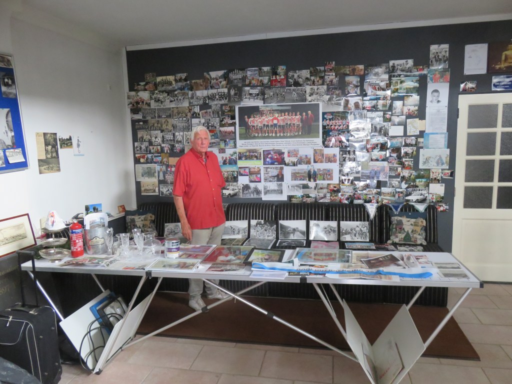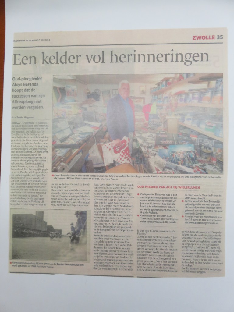 Een krantenartikel over de tijd dat hij personeelschef was. Een typemachine die van Annie M.G. Schmidt was geweest. Wielrenners t-shirts, rijen lang. Tot recent reisde hij nog de verschillende wielerrondes af, in binnen- maar zeker ook buitenland.
