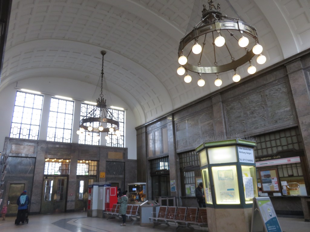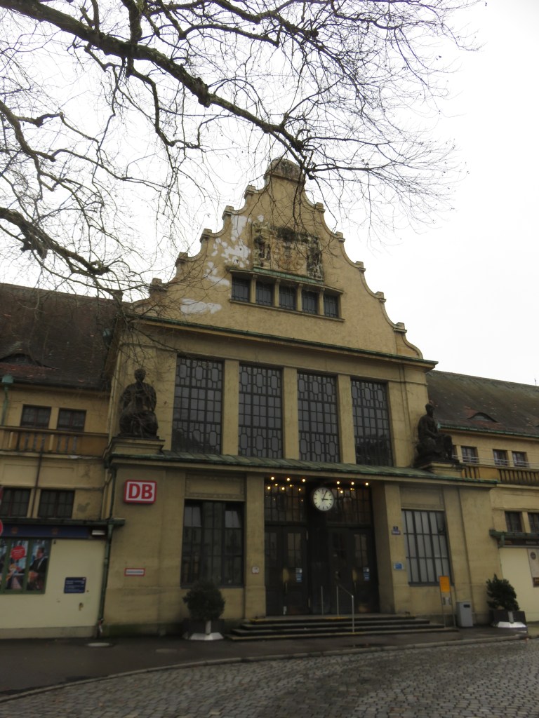 Het station van Lindau is een een enorm station die alle 19e eeuwse grandeur uitstraalt die hier ooit in zijn volle omvang te zien moet zijn geweest. Ik wordt vanzelf er naar toe getrokken en een van de eerste details welke mij opvallen zijn de zwartgeblakerde beelden bij de hoofdingang van het station. Ongetwijfeld beroet door alle stoomtreinen van weleer.