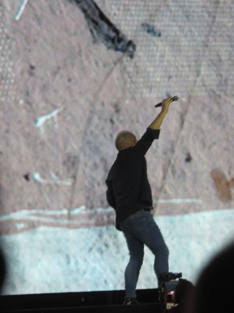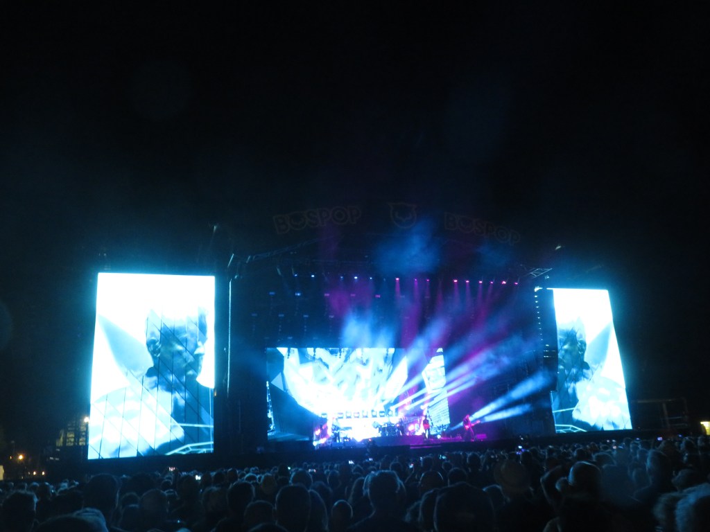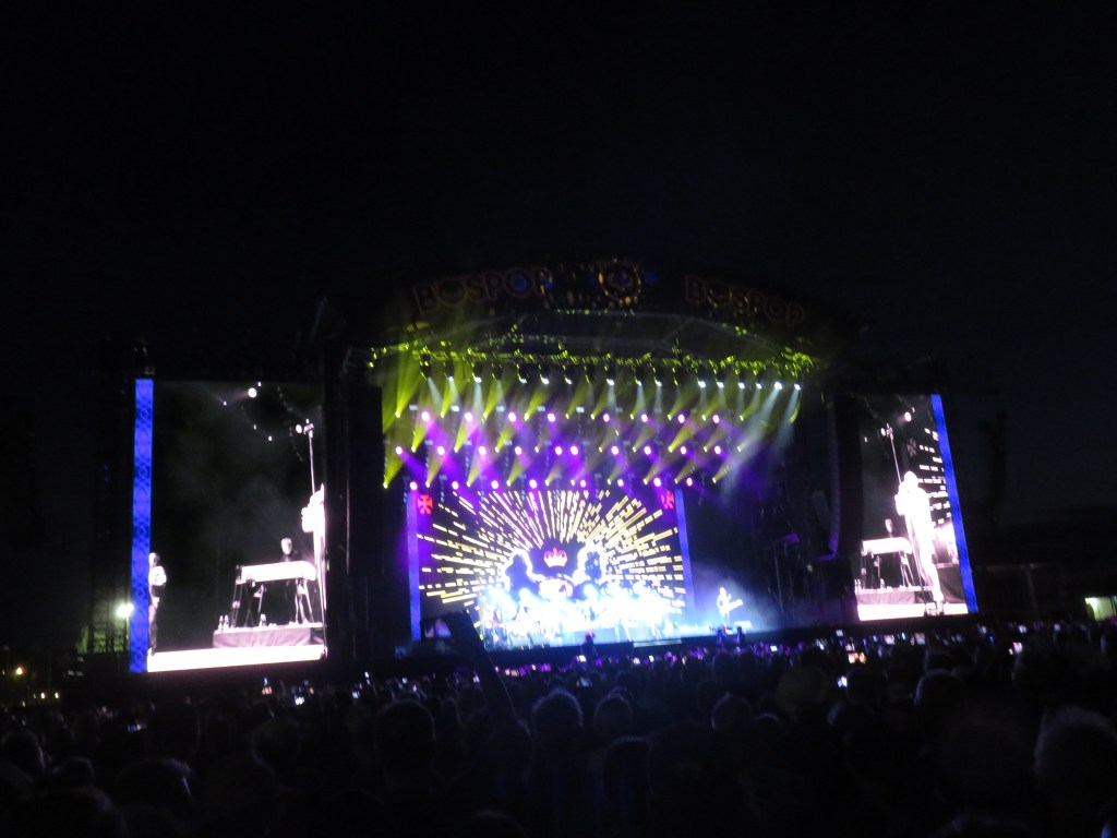 Er worden, indachtig het veertig jarig jubileum van Once upon a time (1985) nogal wat nummers van dat album gespeeld. De vraag was bij mij of Jim Kerr dat qua stem nog aan kon. Het antwoord luidt volmondig: já. Temeer omdat hij – het soms wat schreeuwzangerige – verlaten lijkt te hebben en weer terug nuance in zijn zang legt. Ja, er zijn zelfs kippevel bezorgende momenten tijdens dit concert. Onbetwist hoogtepunt is Belfast child, voorzien van een spannend nieuw intro en door Jim fraaier dan ooit gezongen en eveneens door Charlie fraaier dan ooit gitaarwerk. Iets minder van bombast voorzien dan in 1989 is dit de ware diamant van de avond.