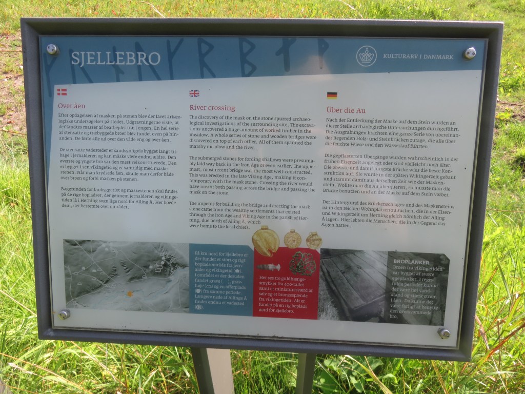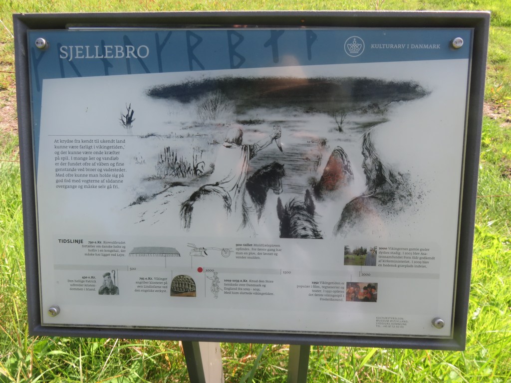 Laat mij u meenemen naar een specifiek monument uit de Vikingtijd. De Sjellebro steen. Ongeveer 12 kilometer zuidoost van Randers staat in een weiland langs de weg een steen. Onopmerkelijk, voor wie niet weet dat het een bijzondere steen is. Gelúkkig – ik kom hier in een later blog op terug – staat nergens onderweg aangegeven dat je in de buurt bent van deze steen en ook niet ter plaatse langs de weg. Dit zal gedaan zijn uit oogpunt van verkeersveiligheid. Wél is er een, wat terloops ogende, uitsparing aan de kant van de weg waar men de auto kan parkeren.